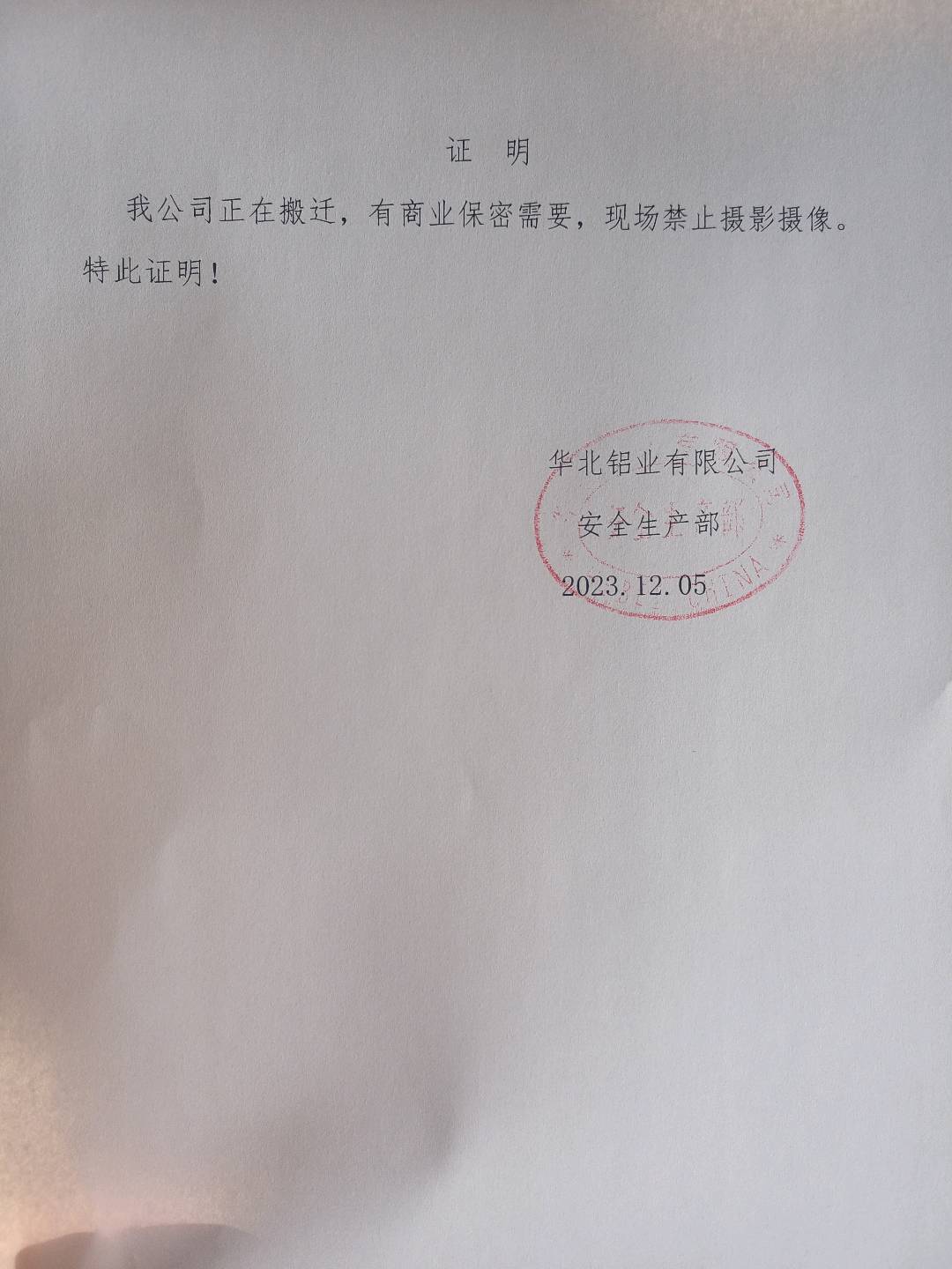 | 现场采样检测人员 | 陈立红、刘成亮 | 用人单位陪同人 | 韩宝 | 时间 | 2023-12-12 |